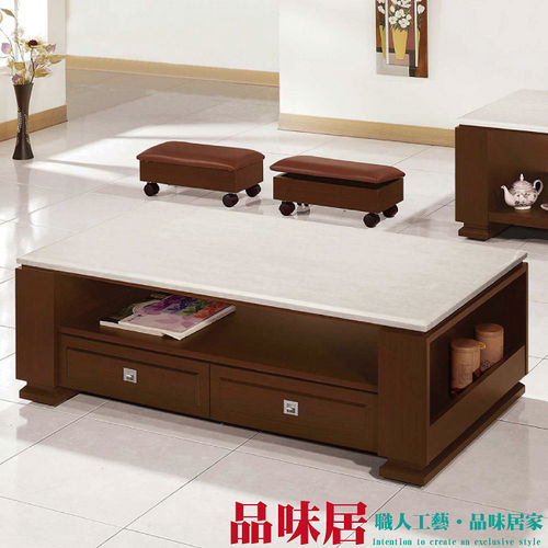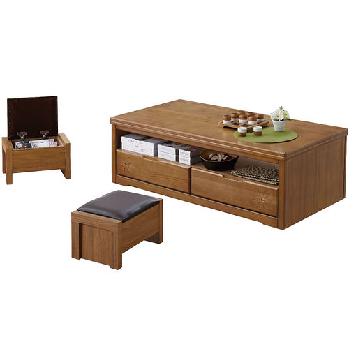 【品味居】史瓦4.3尺柚木色兩抽大茶几(收納椅凳x2)