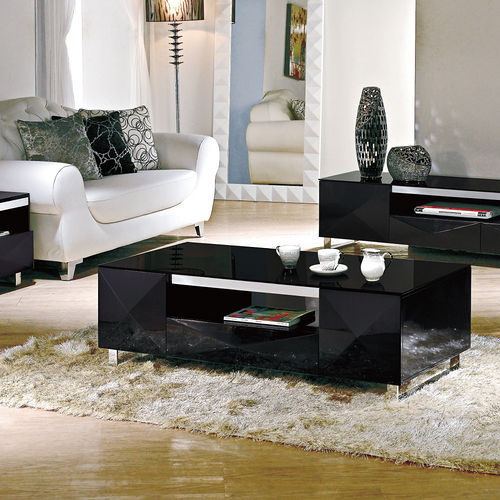 【品味居】艾麗黑色4.3尺玻璃大茶几