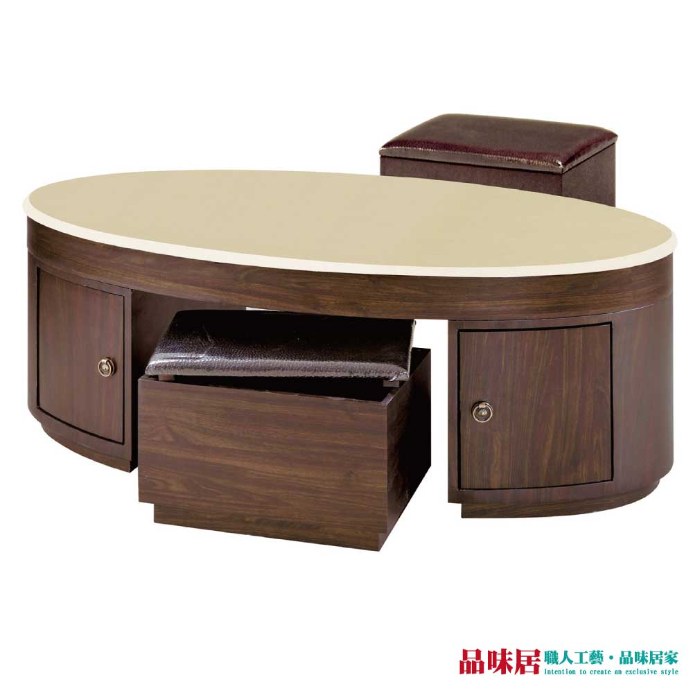 【品味居】愛迪森胡桃色橢圓大茶几(附椅凳2入)