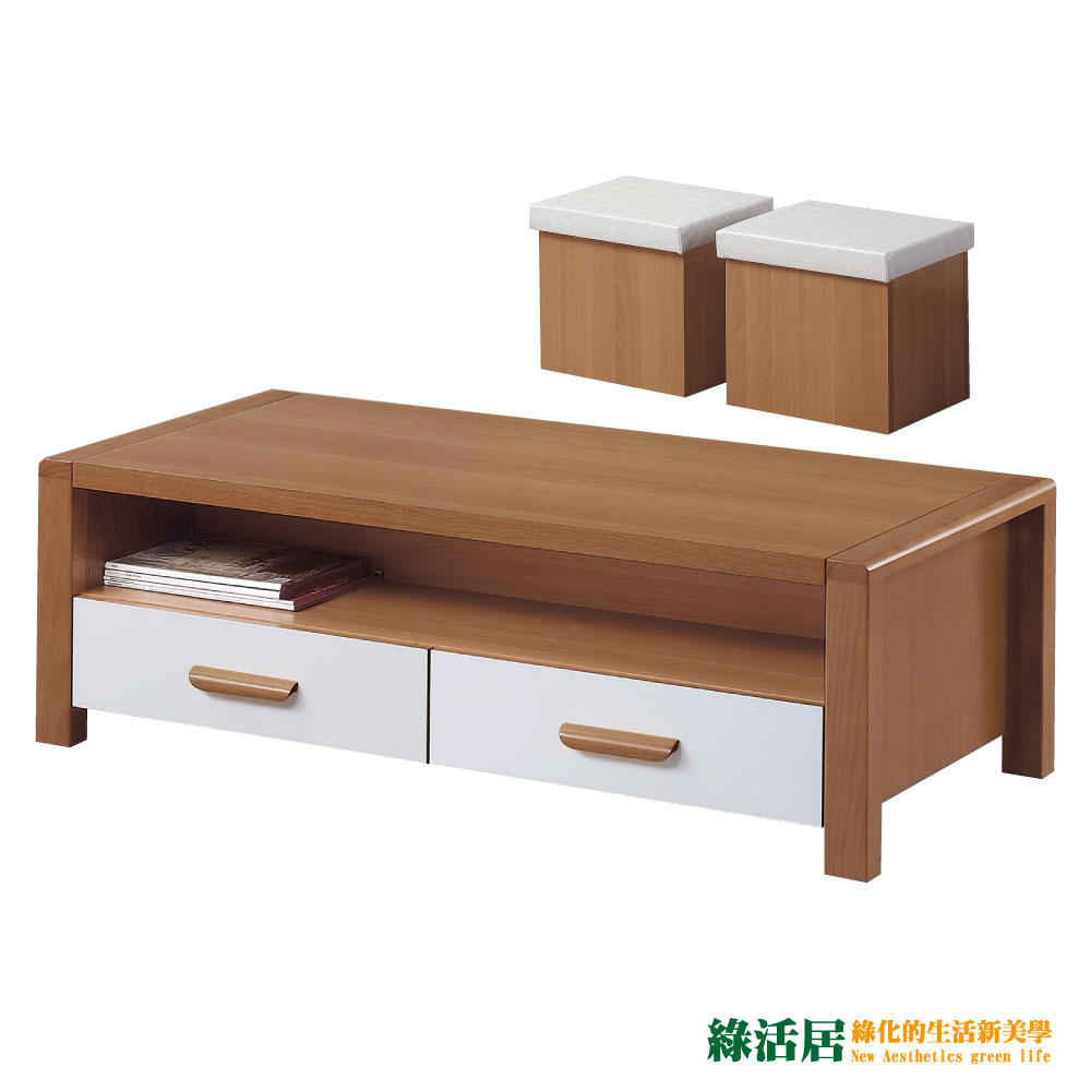 【品味居】愛莉娜雙色4尺二抽茶几(附椅凳x2)