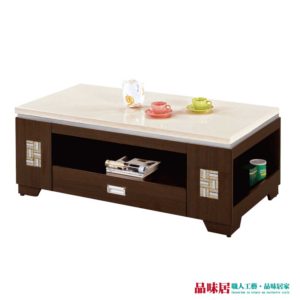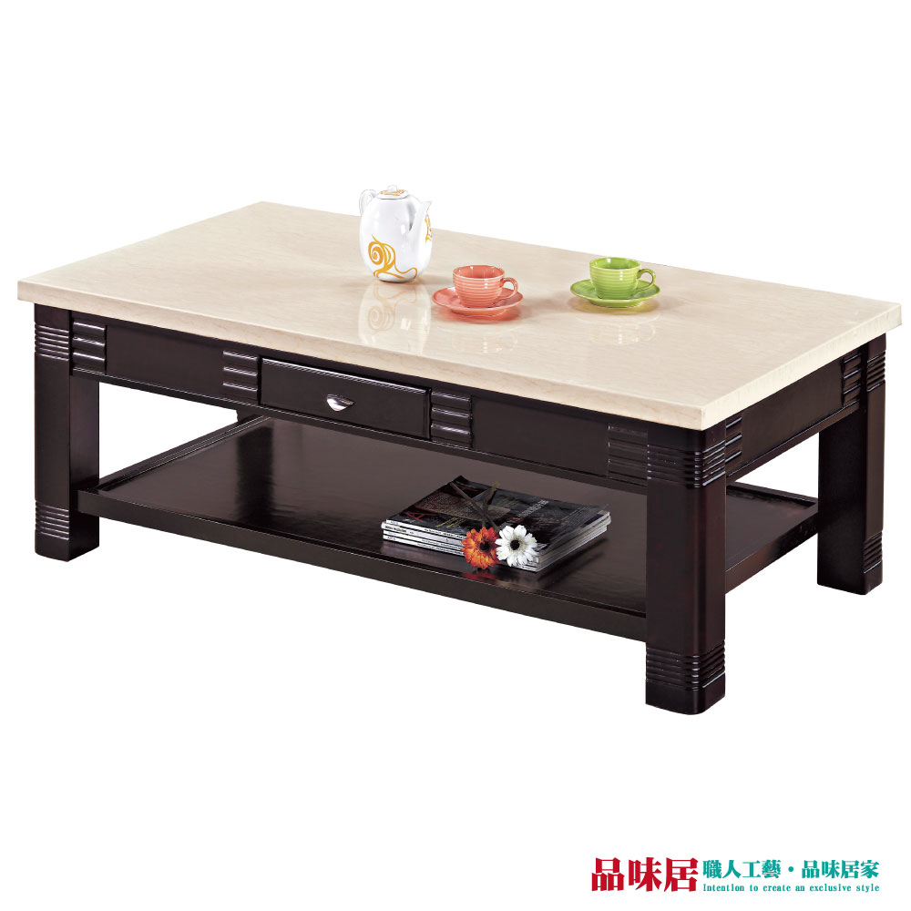 【品味居】瑪亞 4.3尺兩抽幻影米黃石面大茶几