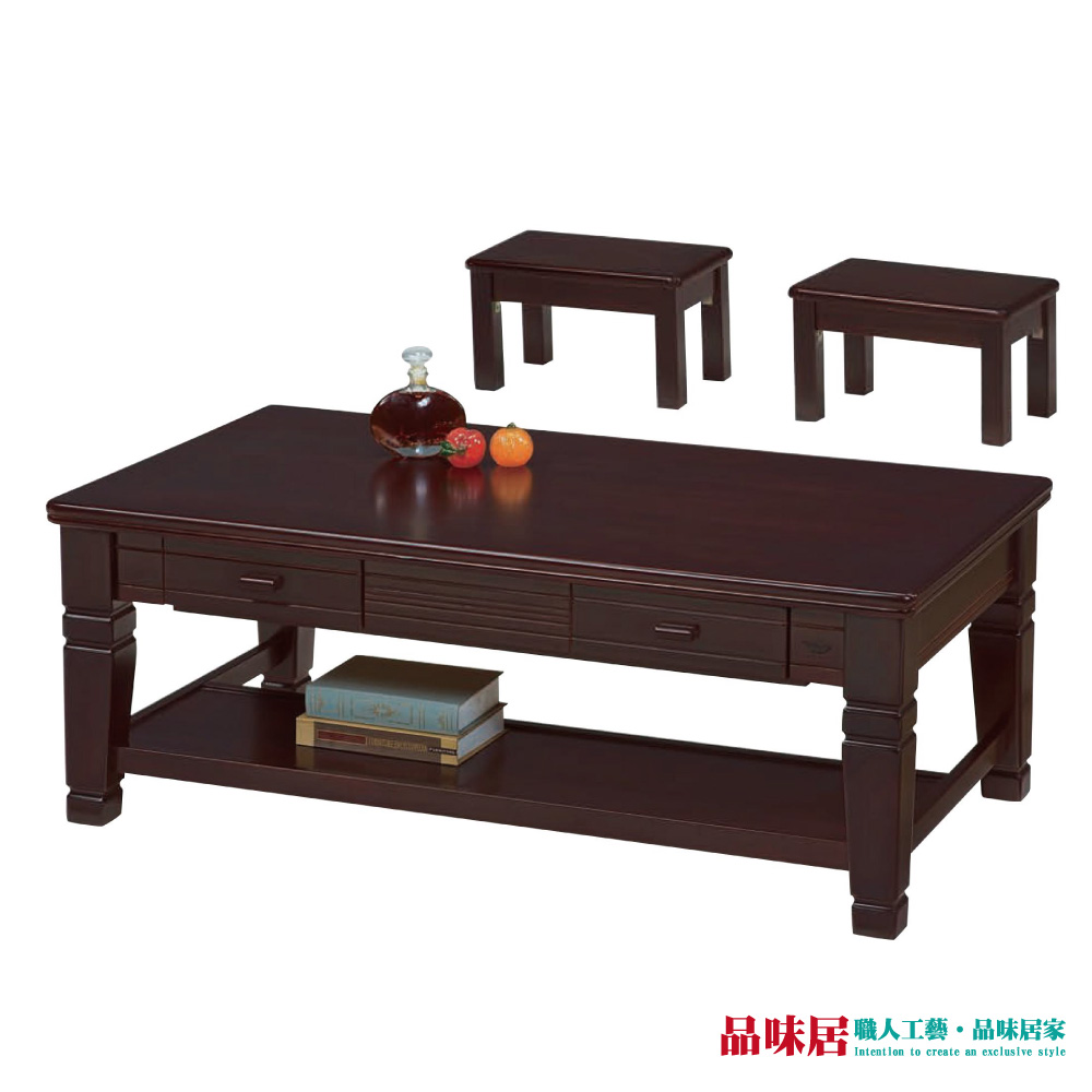 【品味居】坦希雅 4.2尺二抽實木大茶几(附小板凳x2+兩色可選)