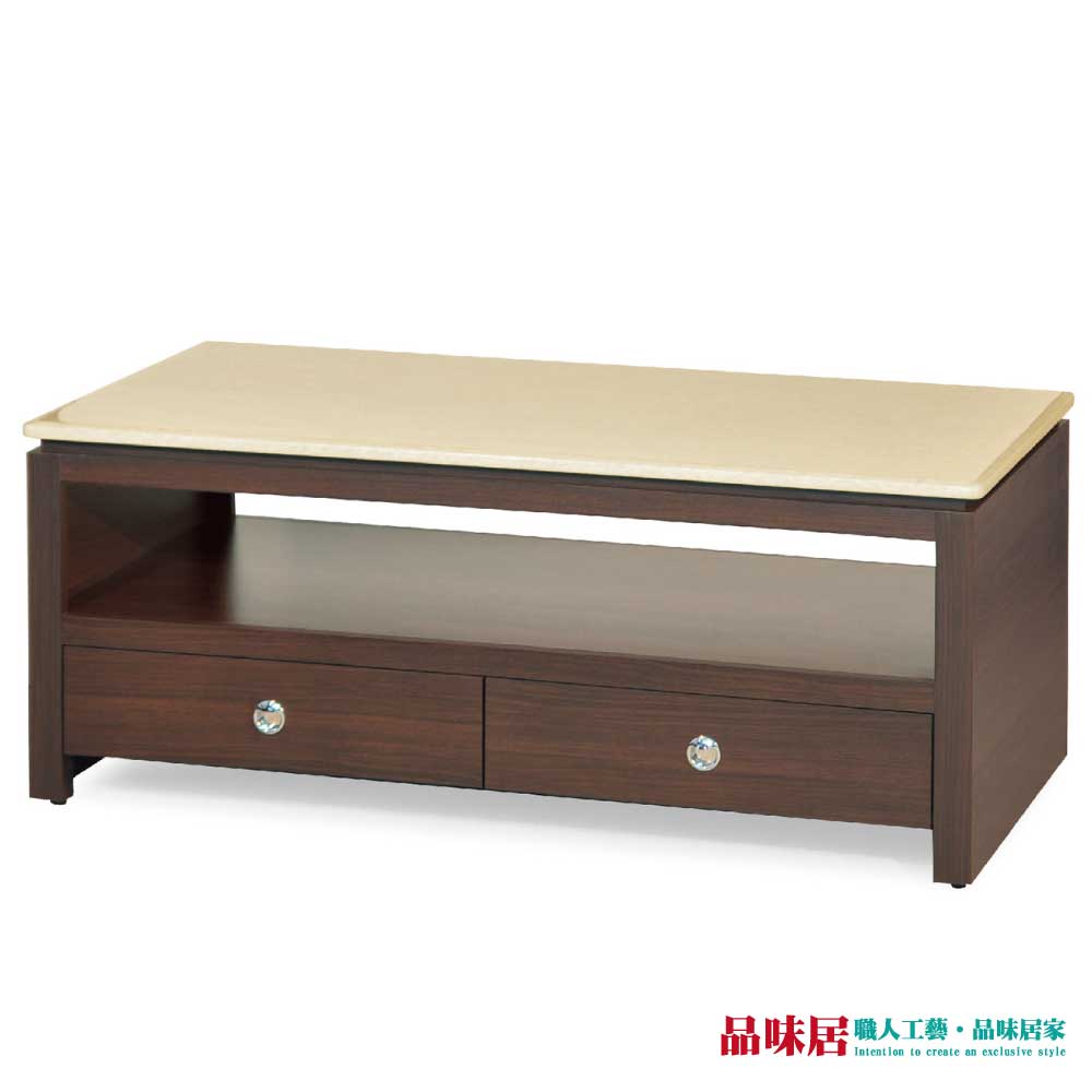 【品味居】安吉妮 4尺胡桃色二抽石面大茶几